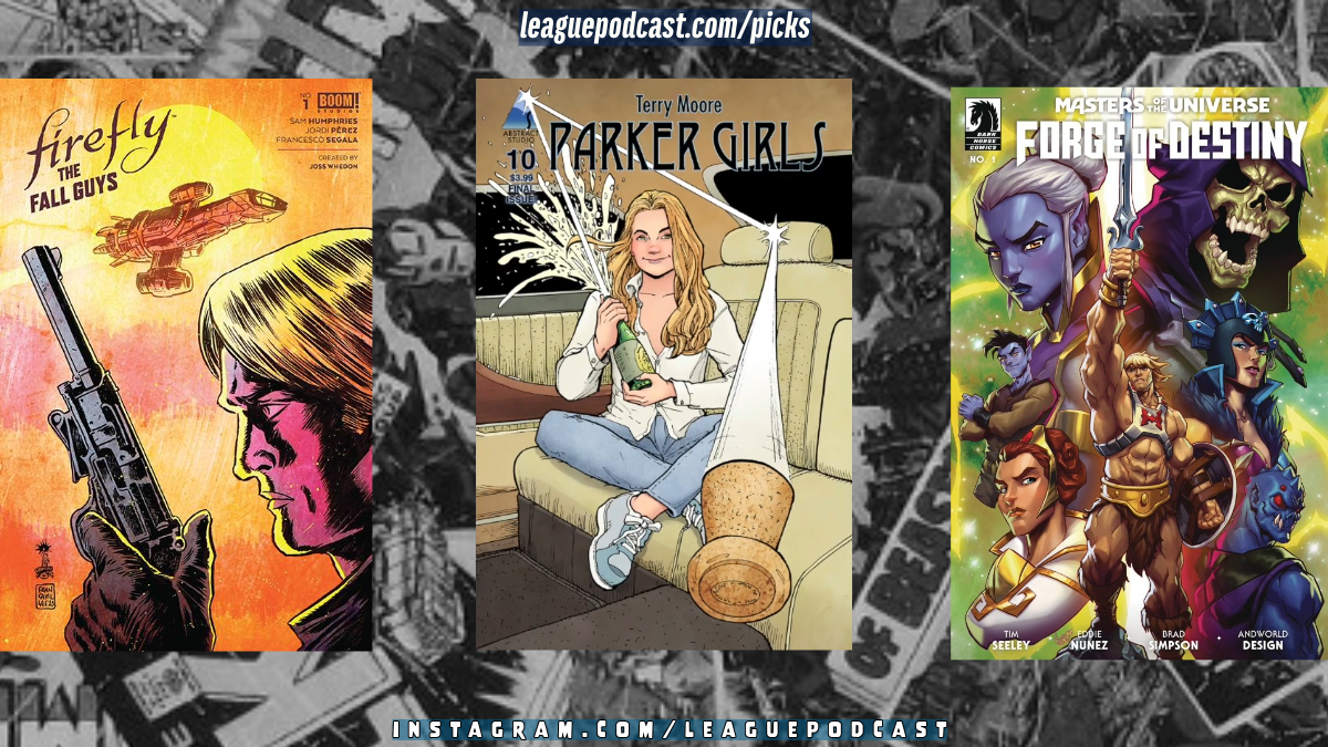Terry Moore (podcast guest) is back with the final issue of Parker Girls #10 today! Go back and listen (or watch) to our Terry Moore episode! ... Horror Master Tim Seeley reveals a "He-Man Year One" prequel to the hit Netflix series Masters of the Universe in Masters of the Universe: Forge of Destiny #1! ... Shiny! The Crew of Serenity are back with some bad dudes in Firefly: The Fall Guys #1. ... Picks this week from LeaguePodcast.com.
